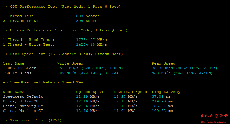 今天分享了云创网络:VPS给大家,同时商家也提供了一个测试机器,这个机器是美国Cera洛杉矶机房的,商家有标的线路为三网回程CN2 GIA线路,就是目前中美最优线路,下面我把测评数据分享给大家,大家可以做一下参考。