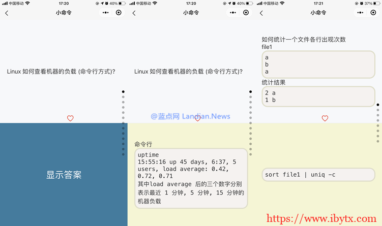 ![[小程序推荐] 帮助你利用碎片化时间学习Linux等命令的小命令小程序](https://www.ibytx.com/wp-content/uploads/2020/08/20200808_5f2e7a9a382e1.png)