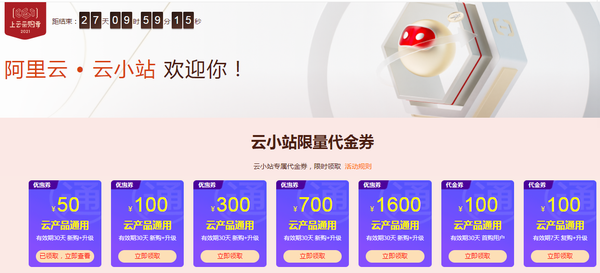 新年伊始,阿里云上云采购季活动正在开展中,针对新老用户均提供了不同产品套餐,新用户购买ECS云服务器最低86元/年起,还可以使用优惠价格续费2次,参与活动的产品包括ECS云服务器,轻量应用服务器,短信包,CDN流量包,云解析,云数据库等等。同时用户还可以在活动页面领取50-1600元各类代金券,下单满额立减。