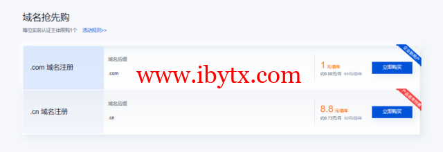 本活动每个域名产品每位腾讯云实名认证主体限购一个;其中“企业新用户”商品仅限产品新企业用户(该产品无订单记录或累计订单金额为0)购买, “产品首单特惠”商品仅限产品新用户(该产品无订单记录或累计订单金额为0)购买。提交未支付订单不影响购买额度