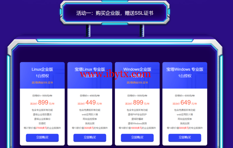 宝塔新春特惠活动一:购买企业版,赠送SSL证书