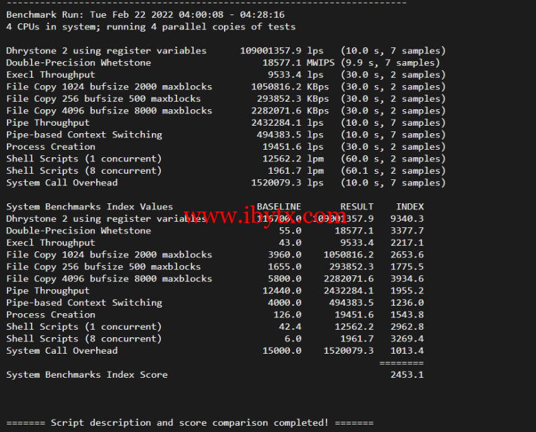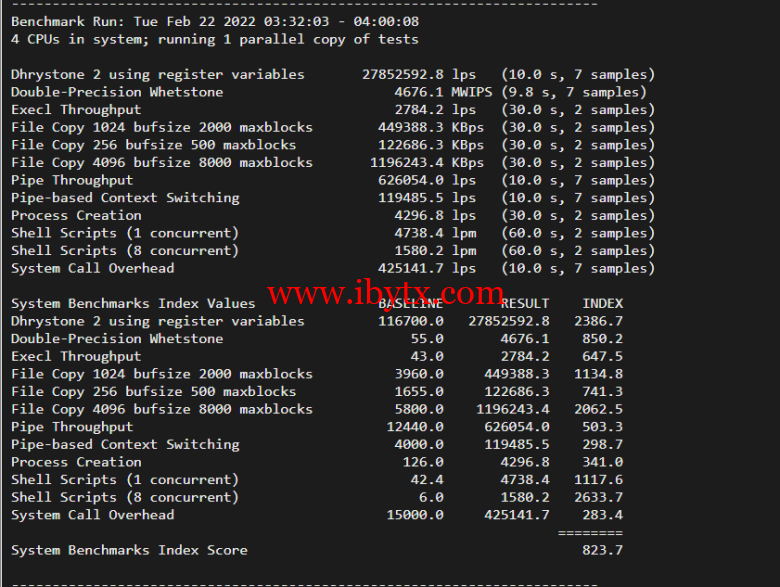 Unix bench Mark跑分: