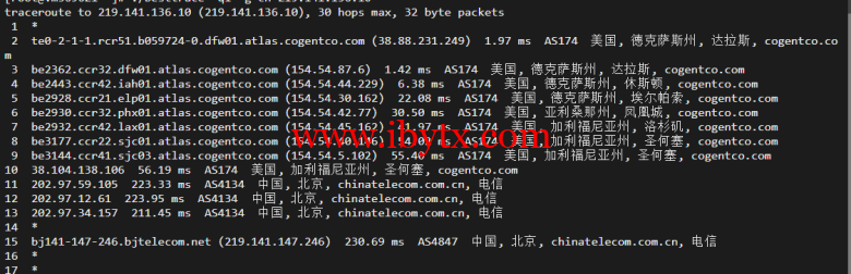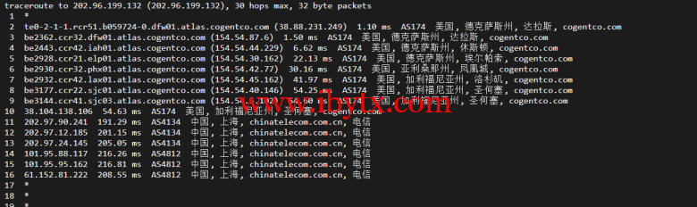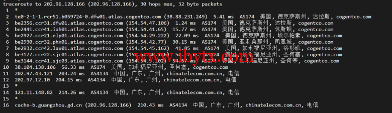回程,到国内电信(分别是北京、上海、广州):依旧也是走的cogentco对接电信骨干