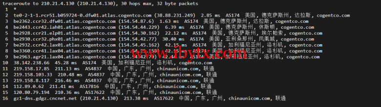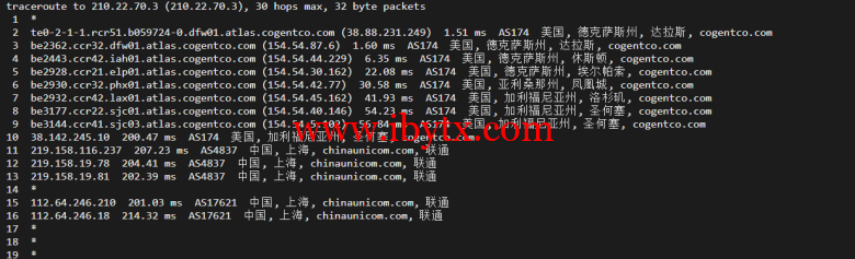 回程,大国内联通(北上广三处):一样也是cogentco对接骨干网
