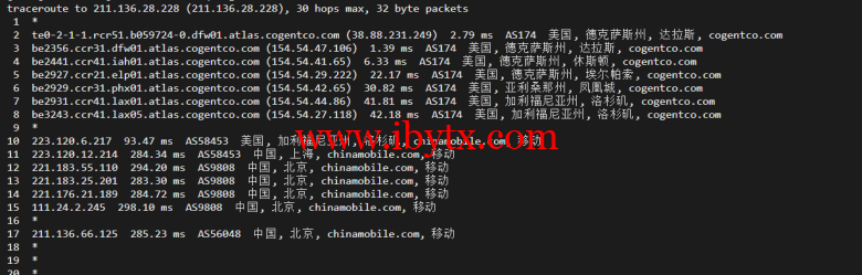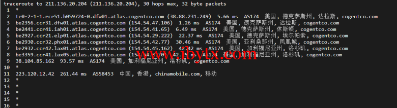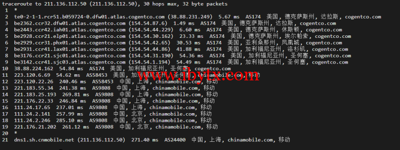 回程,到国内移动(北上广):还是cogentco对接移动骨干网