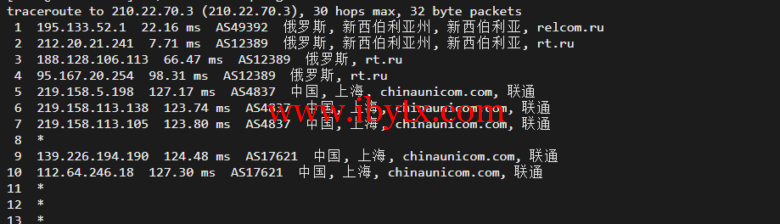 移动去程:走CMI香港绕美国转rostelecom到机房