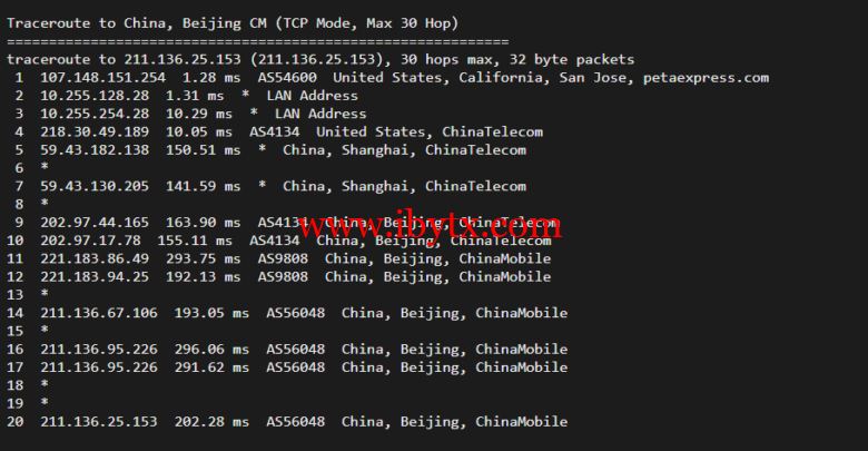 电信走cn2,联通走cn2,移动绕路回国在走cn2去到美国