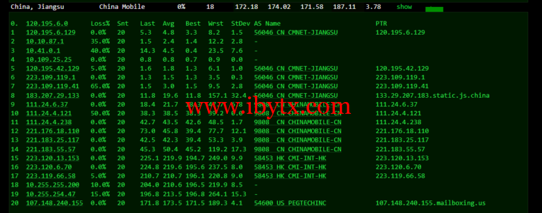 回程,到国内移动,走cn2回国