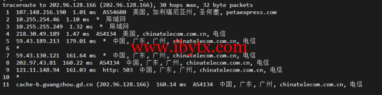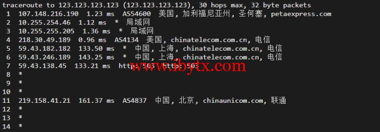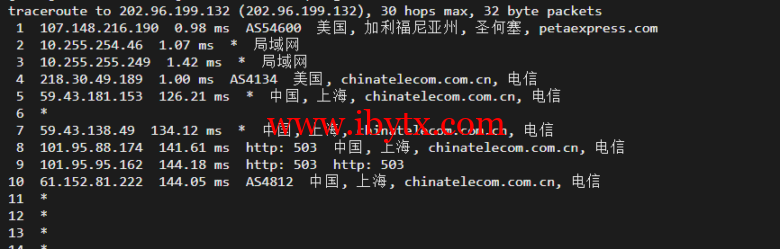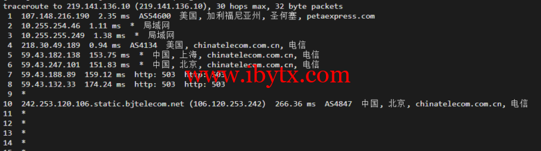回程,到国内电信,走cn2回国