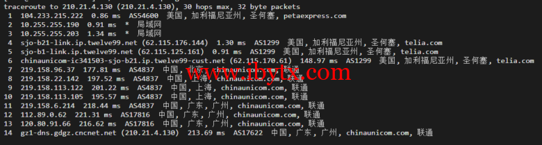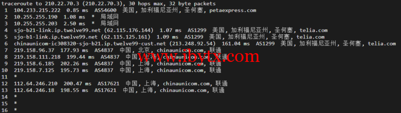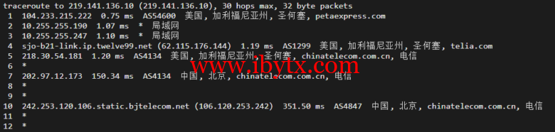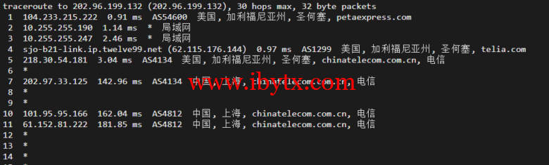 回程,到国内电信,直连回国