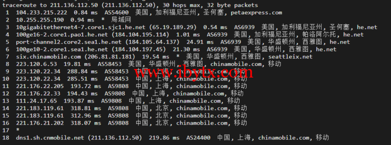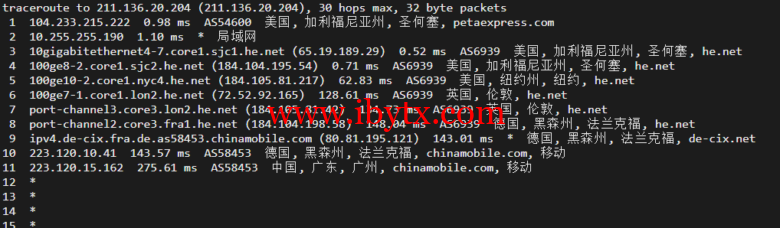 回程,到国内移动,北京、上海方向直连回国,广州方向绕英国、德国回国