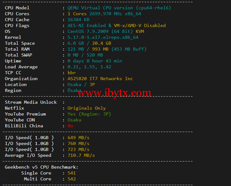 本文会为大家介绍搬瓦工日本大阪软银机房 Japan Equinix Osaka Softbank OS1 IDC(JPOS_1)线路、方案整理、机器性能、流媒体解锁等,希望能对大家选择搬瓦工方案时有所帮助。