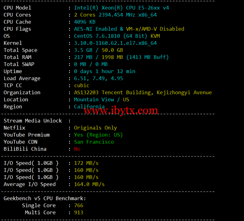 本文针对腾讯云轻量应用服务器美国硅谷机房,做了简单测评,主要针对硬件信息、流媒体解锁、线路丢包、国内ping延迟、硬件跑分、线路走法等,希望对大家选购机器有所参考。