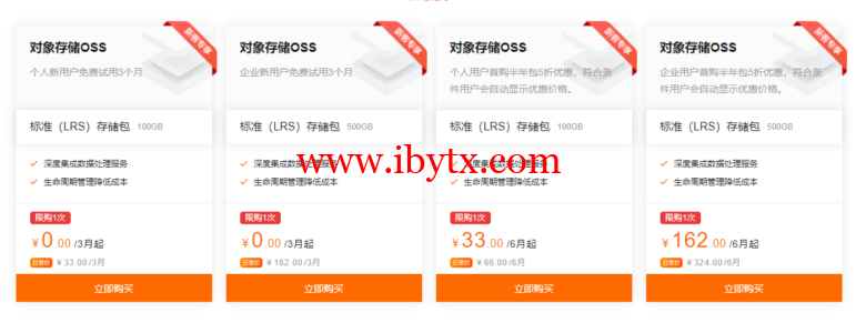 阿里云:对象存储OSS,新人特惠,0元体验,100GB存储包,半年仅需要33元