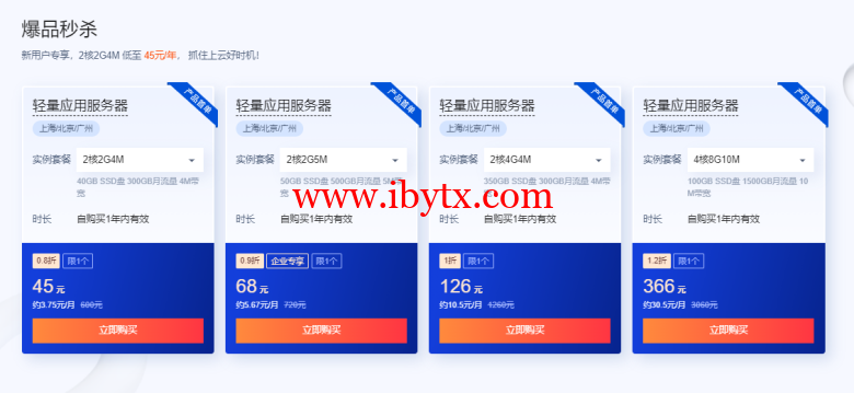 新用户专享,2核2G4M 低至 45元/年, 抓住上云好时机!
