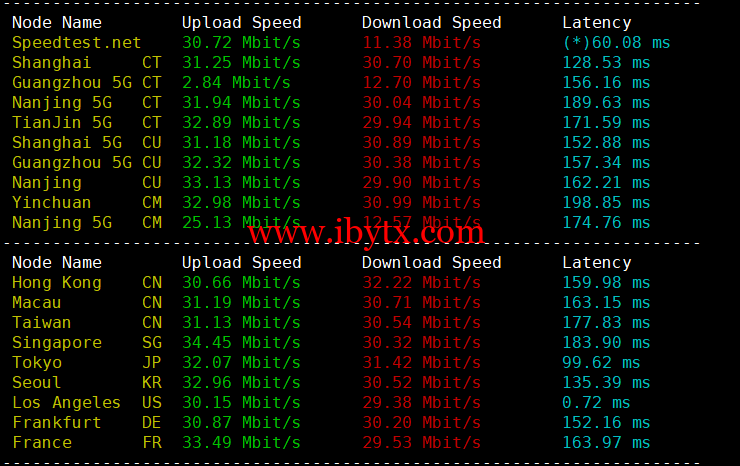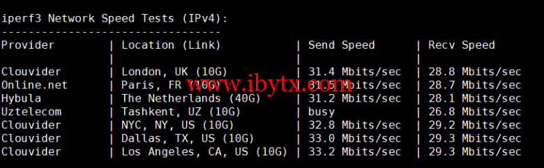 Iperf3欧美地区的节点的测试: