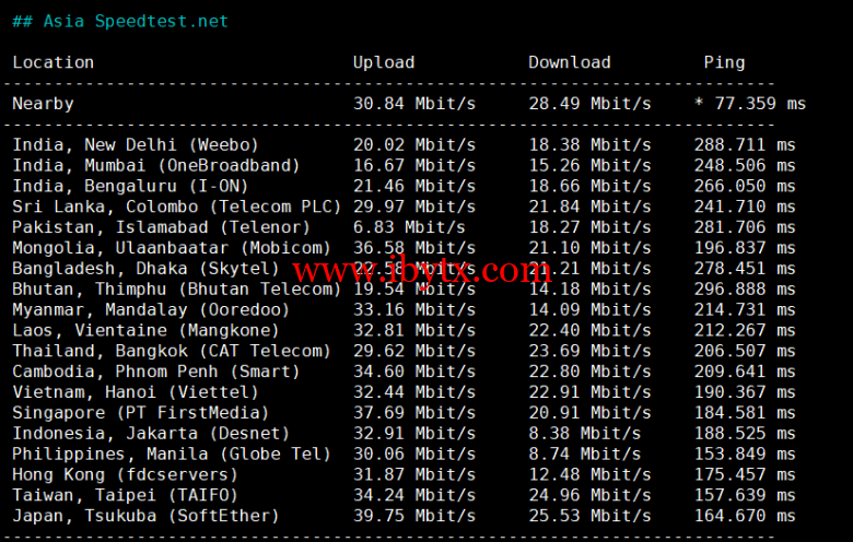 Speedtest亚洲地区节点测试: