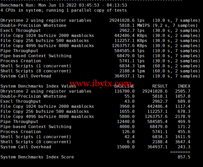 Unix bench Mark性能跑分测试:
