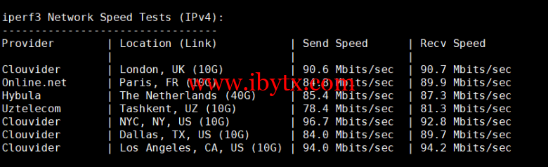 Iperf3欧美地区的节点的测试: