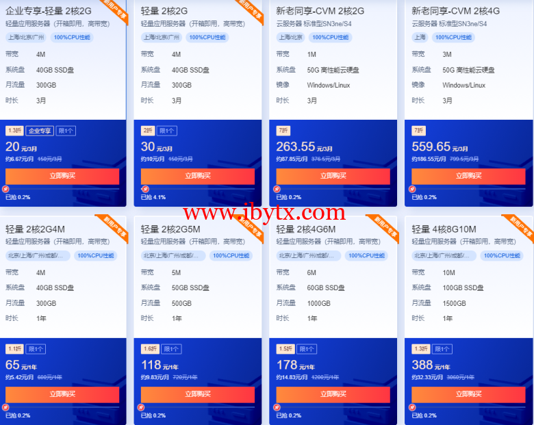 4核 | 8G | 100G | 10M | 1.5T | 412元/年 | 直达 |