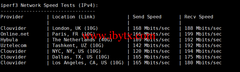 Iperf3欧美地区的节点的测试:
