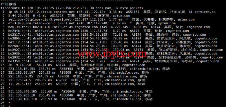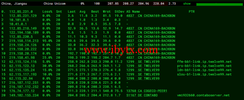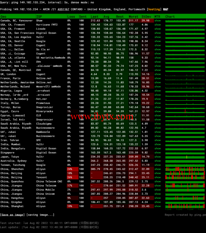 全球丢包测试: