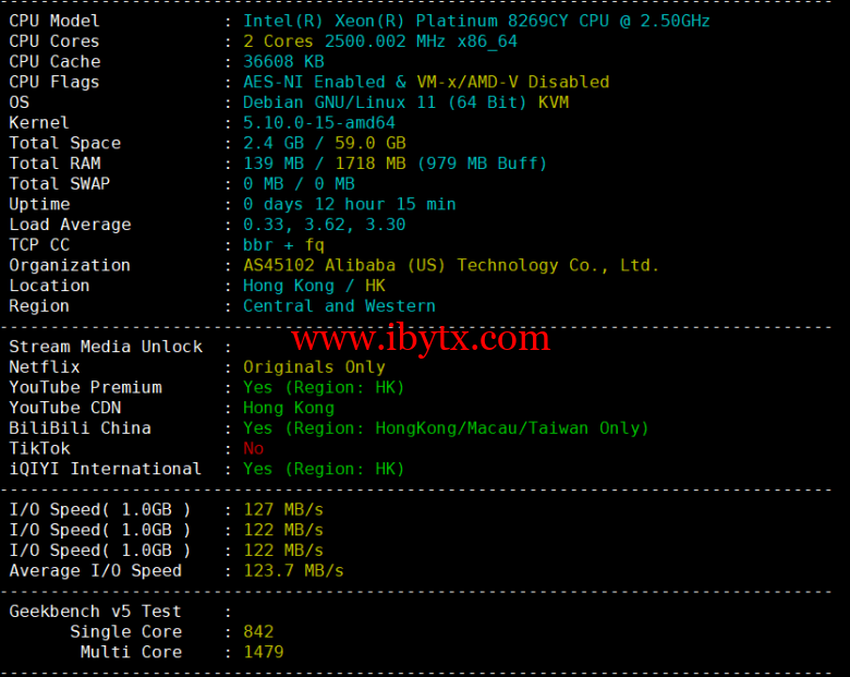 配置信息/IO读写/CPU Benchmark测试:上方红色为测评机器配置