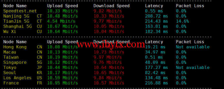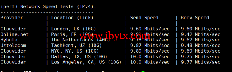 Iperf3欧美地区的节点的测试: