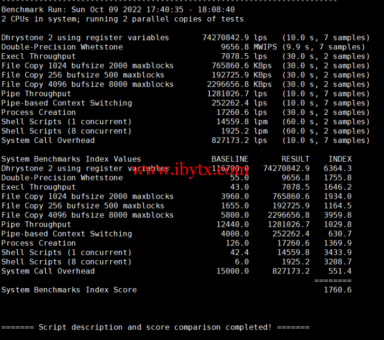 Unix bench Mark性能跑分测试: