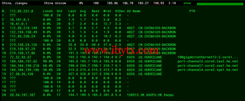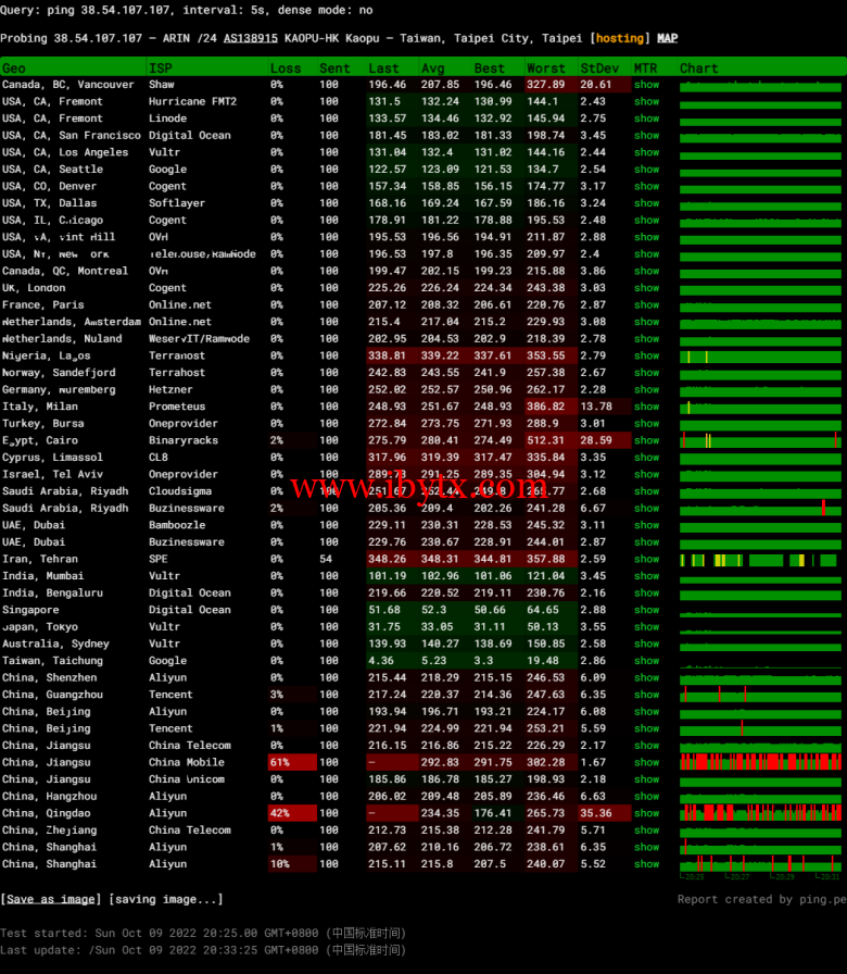 全球丢包测试: