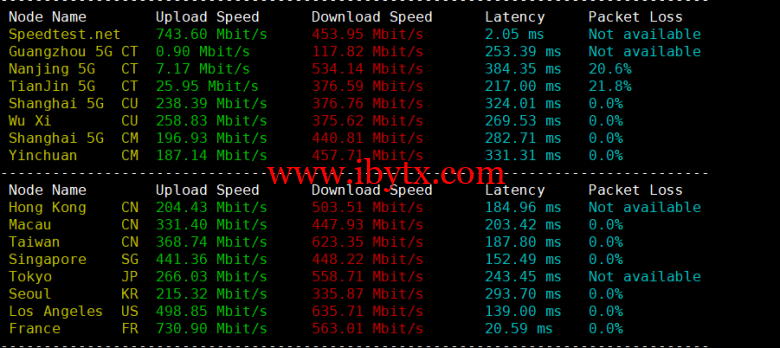 Iperf3欧美地区的节点的测试: