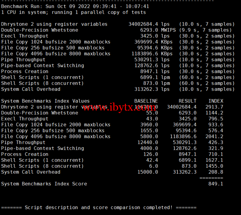 Unix bench Mark性能跑分测试: