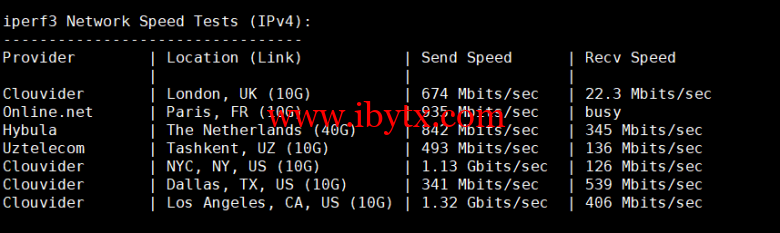 Iperf3欧美地区的节点的测试:
