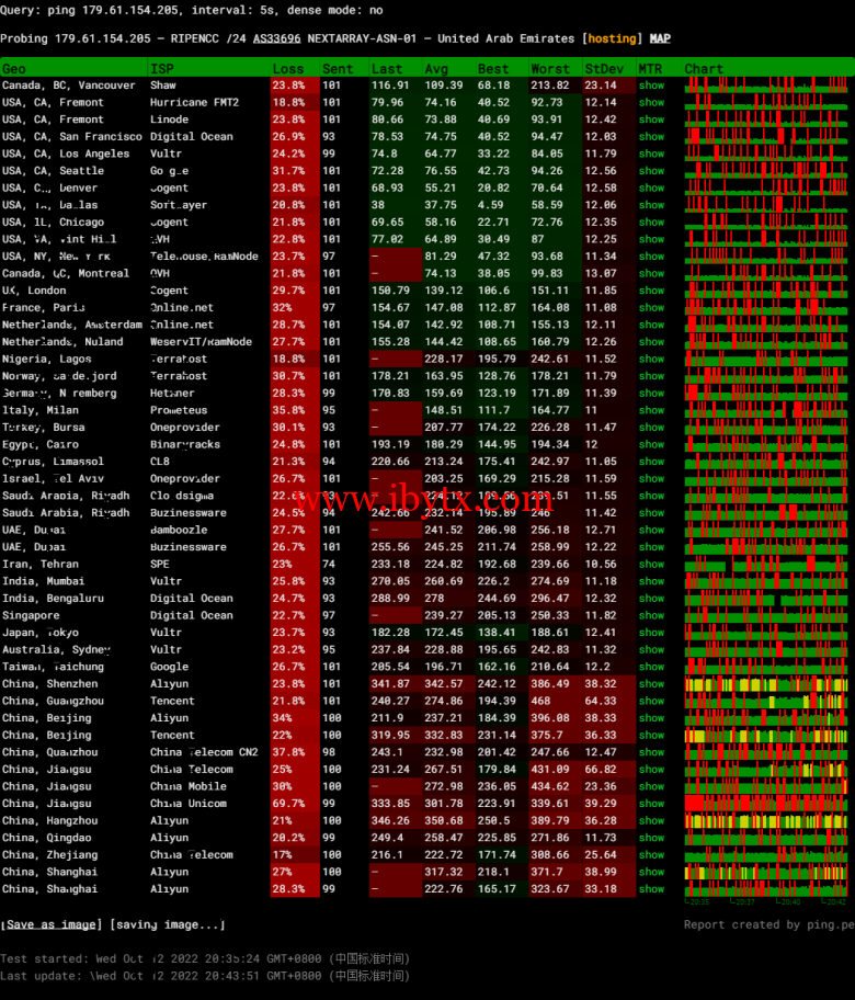 全球丢包测试: