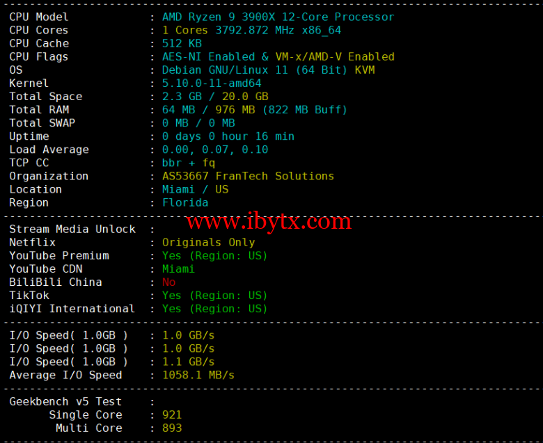BuyVM提供的VPS主机最大的特点是均为1Gbps不限制流量方式,也支持Linux或者Windows操作系统,最低月付仅3.5加元起(≈2.5美元),本文对BuyVM的迈阿密机房,做个简单测评,方便大家购买参考。