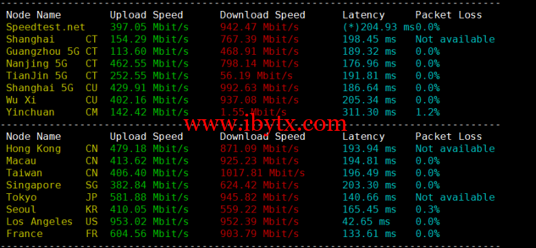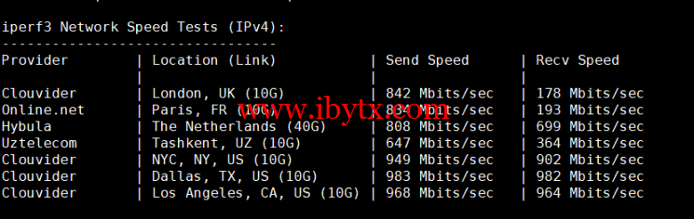 Iperf3欧美地区的节点的测试:
