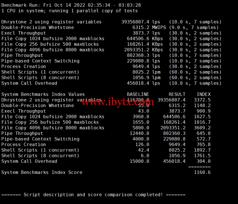 Unix bench Mark性能跑分测试: