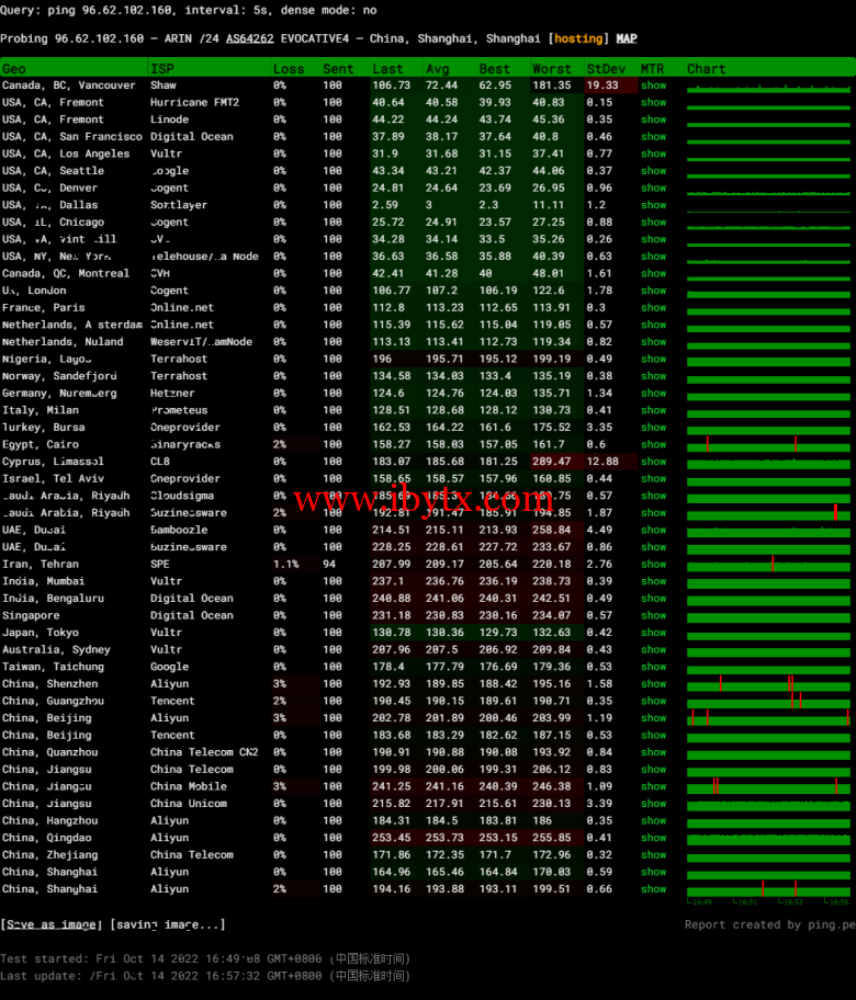 全球丢包测试: