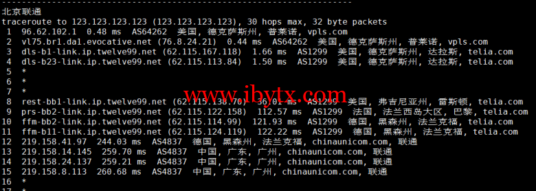 回程,到国内联通