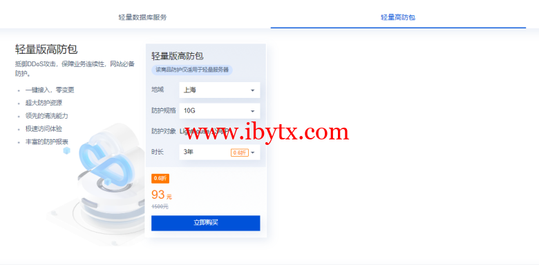 ddos攻击是很烦人的一件事情,他会让你的IP黑洞,站点无法访问,腾讯云轻量服务器专属定制版高防服务,限时特惠仅需31元/年(原价500元/年)。看了看感觉还不错,还挺便宜的,一年 31 元,可以购买 3 年只需要 93 元,而且购买之后发现续费也是这个折扣价格。建议趁着现在多买几年多续费几年,最高可以防护 10G 攻击,一般来说也不知道够不够用。