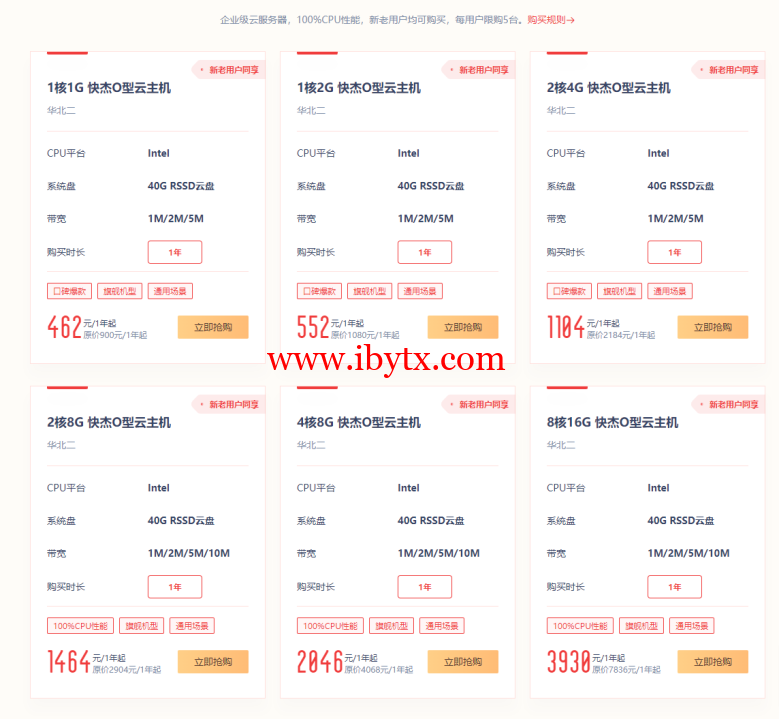 企业级云服务器,100%CPU性能,新老用户均可购买,每用户限购5台。