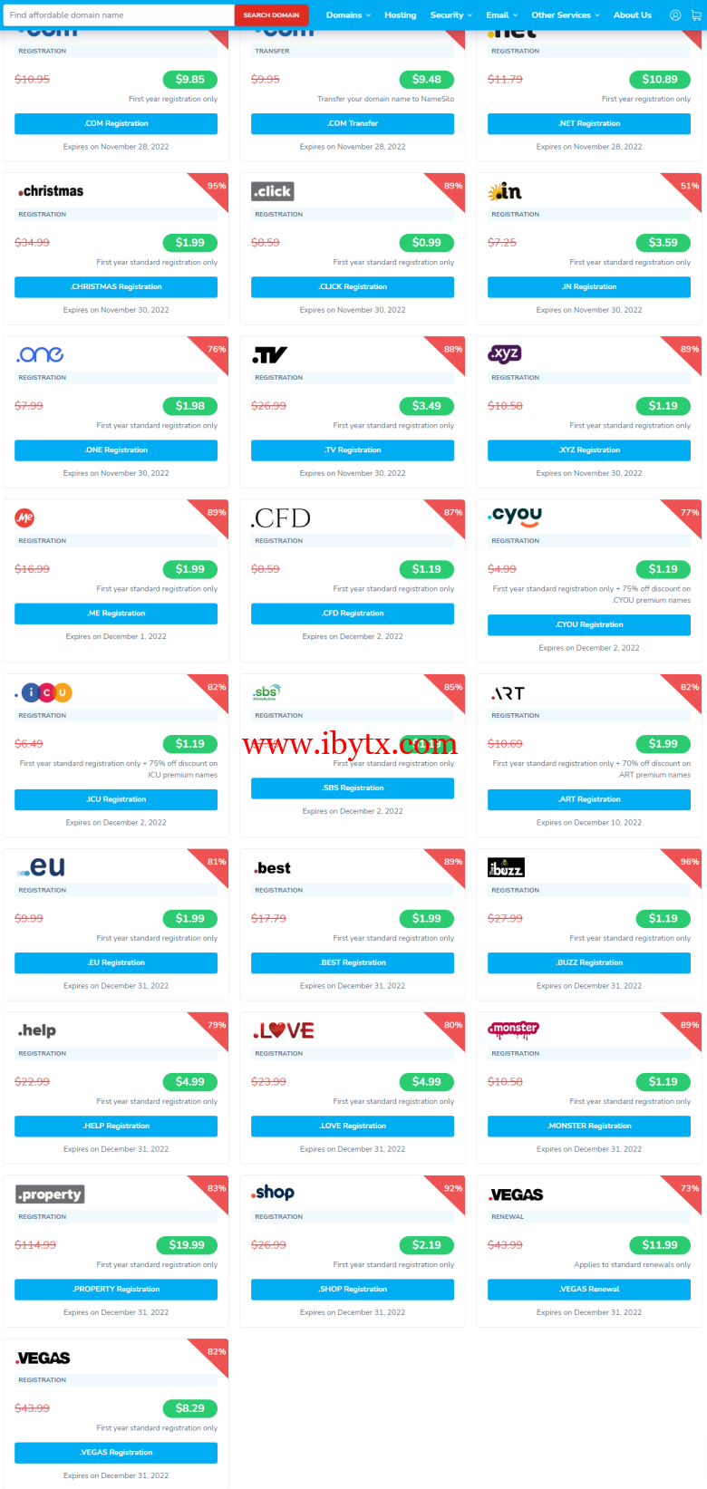 Namesilo怎么样,Namesilo是一个比较低调的域名注册商,虽然成立时间不如那些老牌的服务商,但是该商家提供域名新注册和续费价格不会相差太大,还是深得不少用户喜爱的。不过在以往很少发布优惠活动,而今年Namesilo发布了2022 年黑色星期五/网络星期一特别优惠活动,专属的页面,而且还会时不时的更新优惠和促销折扣,虽然力度不是很大,但是聊胜于无吧,近期有需要注册或转移域名的朋友可以关注一下。