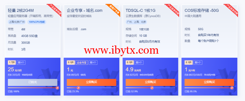 好久没有分享腾讯云的活动了,商家其实一直才都是有活动的,近期推出了一个年末的促销,比较能看的就是每天的秒杀活动,一款2核2G4M的国内轻量3个月仅需要25元,COM域名购买只需要1元,每天9点准时开始秒杀活动,另外商家针对新人也有很多的促销,优惠力度非常大,安心做站的朋友可以入手。