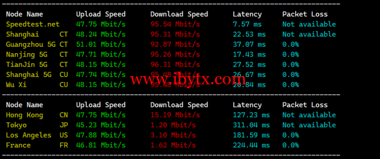 speedtest国内外上行下行测试: