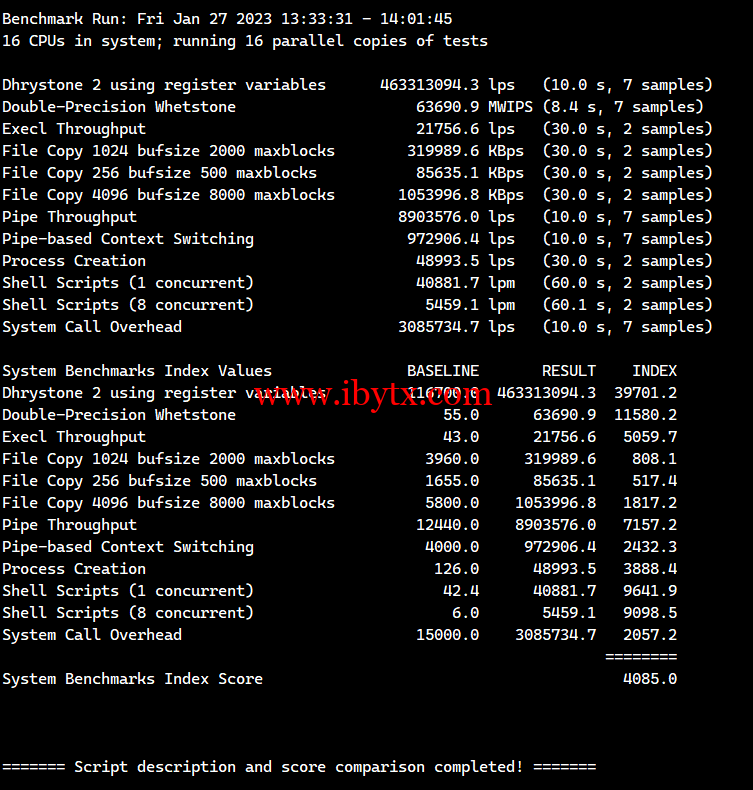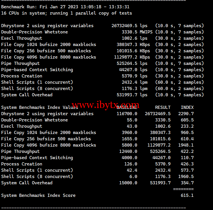 Unix bench Mark性能跑分测试: