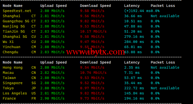Iperf3欧美地区的节点的测试: