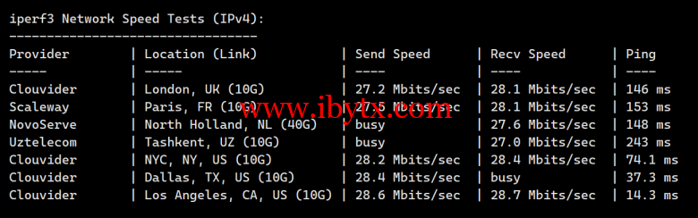 Iperf3欧美地区的节点的测试: