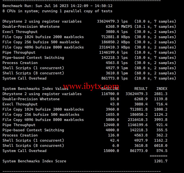Unix bench Mark性能跑分测试: