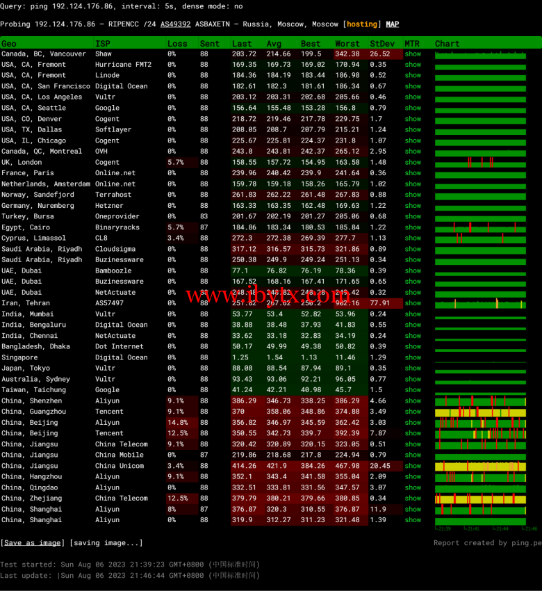 | 华东地区 | 88 | 上海(移动-xf) 64.7 毫秒 | 江西南昌(炎黄盛世) 2336.7 毫秒 | 330.6 毫秒 |