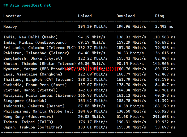 Speedtest亚洲节点上行下行测试: